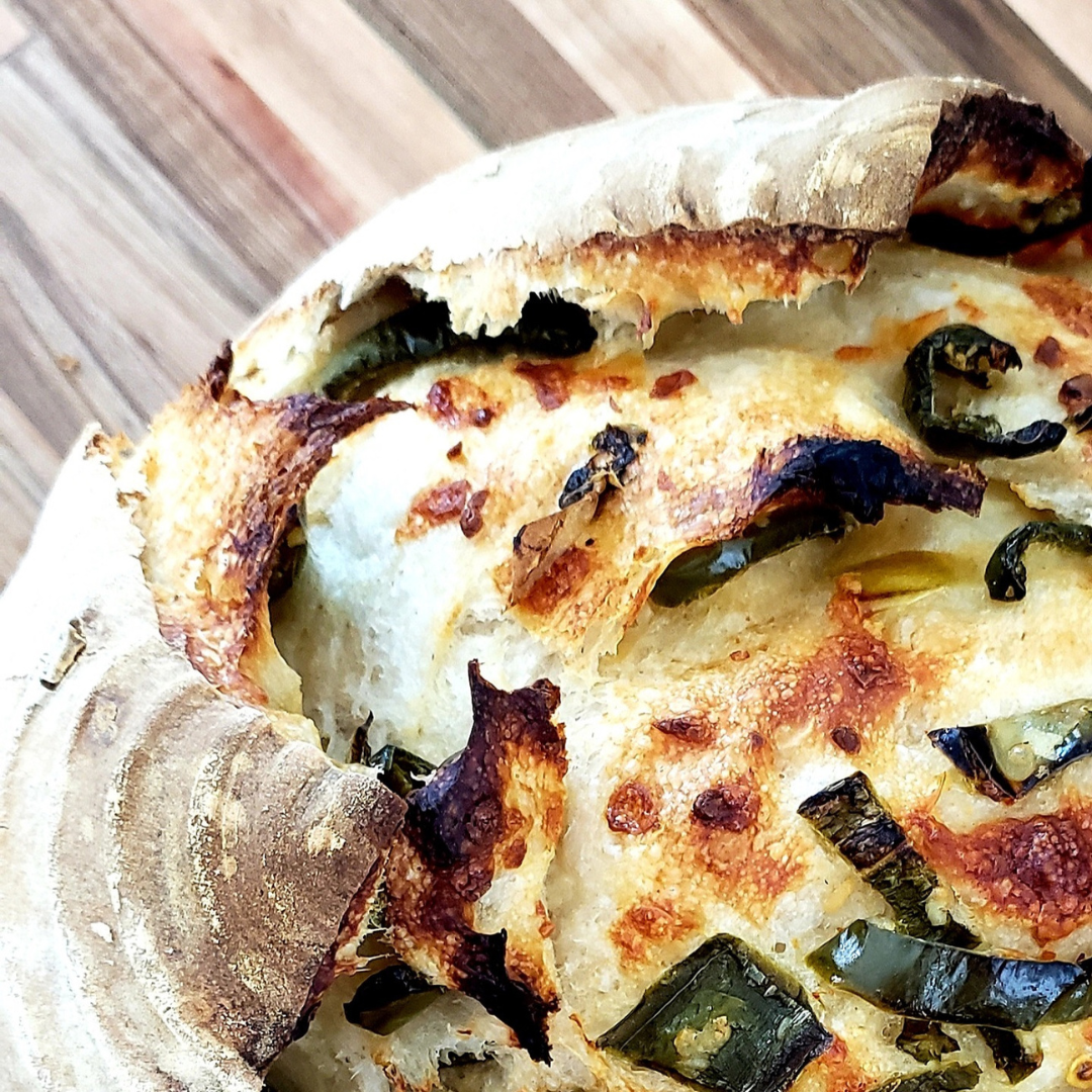 After endless trials and a good amount of benching, proofing, scraping, shaping, and baking, Chrissi uses a lengthy fermentation process – more than 36 hours! – resulting in bread that is super healthy while tantalizingly delicious. She bakes exclusively with organic flour, and uses All Purpose (wheat/barley), Rye, Einkorn & Wheat flours. For her enriched loaves, Chrissi says she chooses top-quality, organic products like grass-fed butter, cheese, seeds, herbs, spices, sugars, fruits, and oils.