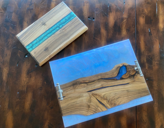 You don’t need to buy a special board. A wood cutting board, serving tray, or any flat surface you have will work. Some of our favorite boards come from JK Custom Kindling and Werden’s Woodworking, two of our wonderful vendors from our Ag & Artisan Faire.