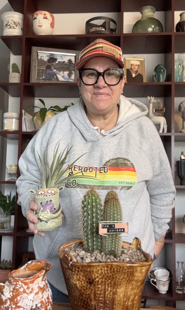 Debra has also always loved thrifting, as she likes to save beautiful pieces from ending up in a landfill and repurpose them into something new. She especially loves handmade ceramic finds because someone took the time to create them. Her new passion and her old passion seamlessly combined- she had all the plants she could need and unique vessels for them to live in. Thus, Rerooted and Co. came to be.